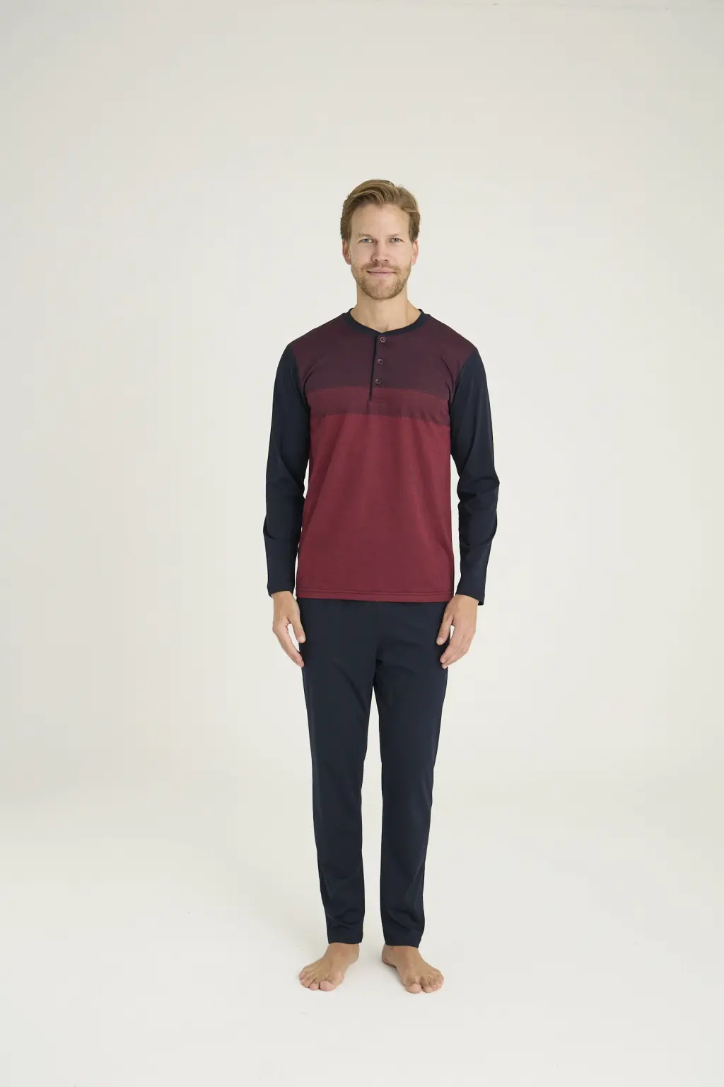 LYYN 9218 Erkek Midi Yaka Pijama Takım