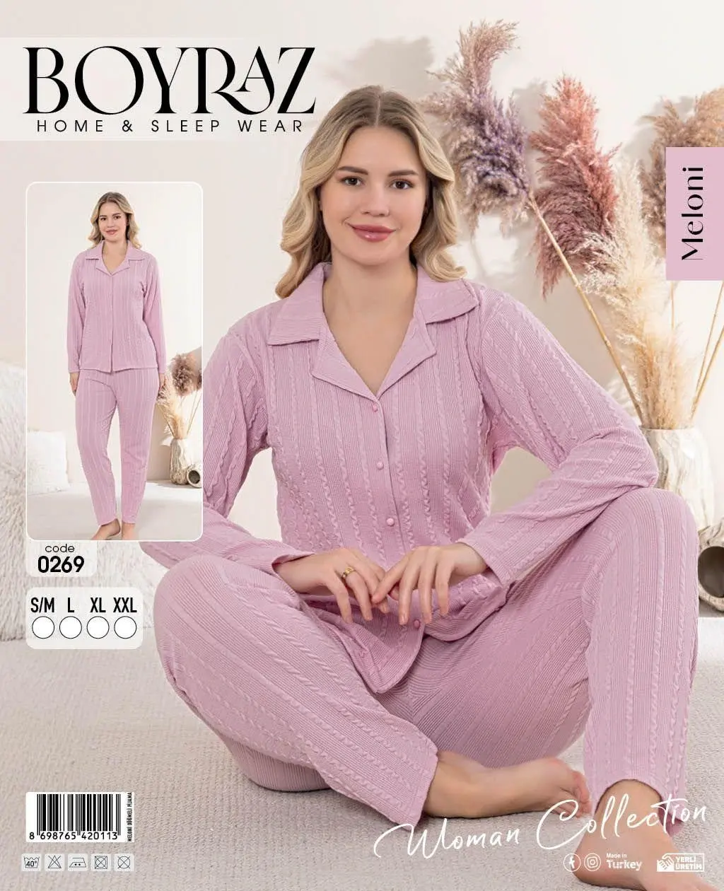 • Boyraz 0269 Kadın Patlı Uzun Kol Pijama Takımı