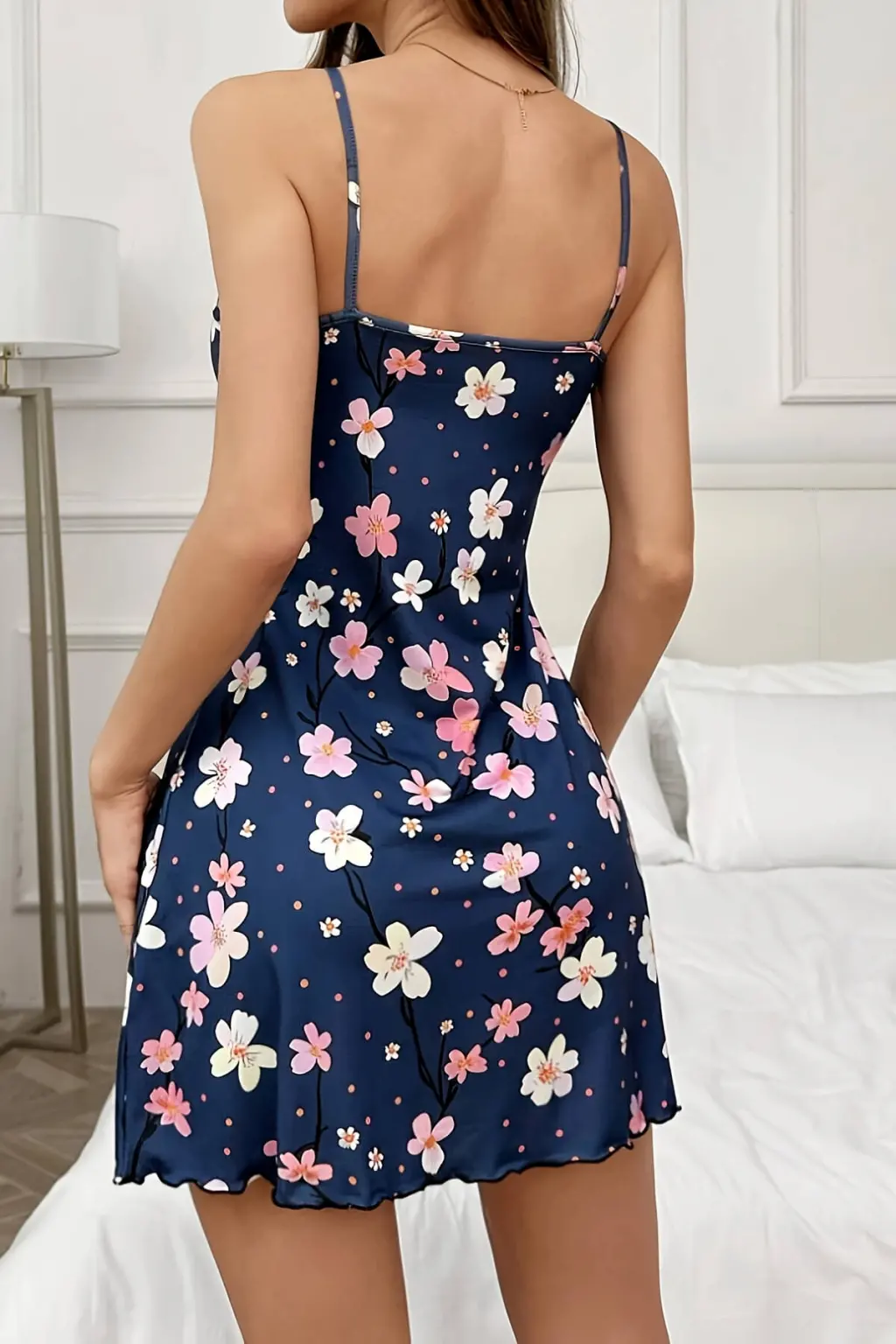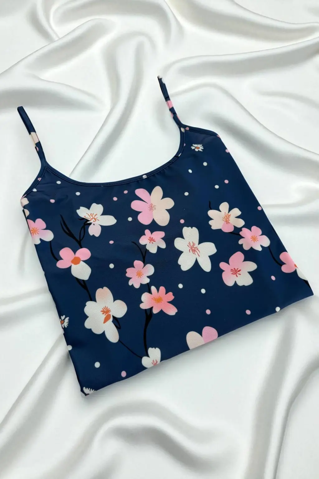 • Çiçek Desenli Mavi Askılı Gecelik