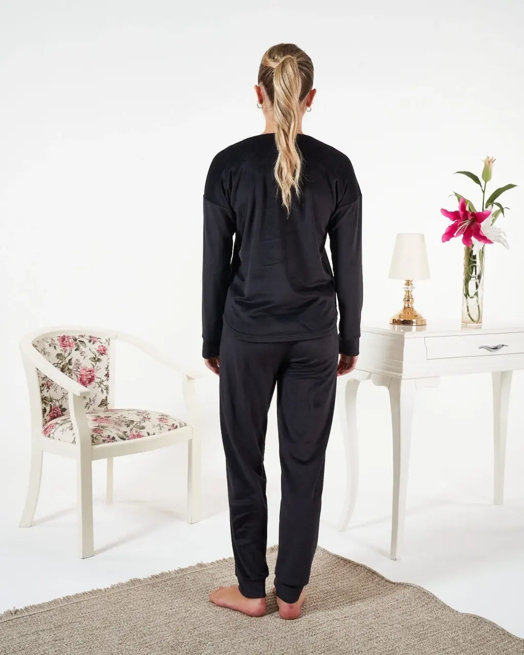 LYYN Estiva 25384 Uzun Kol Kadife Pijama Takımı