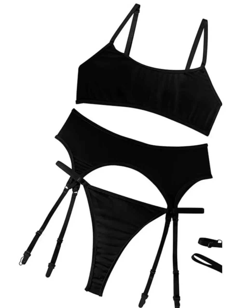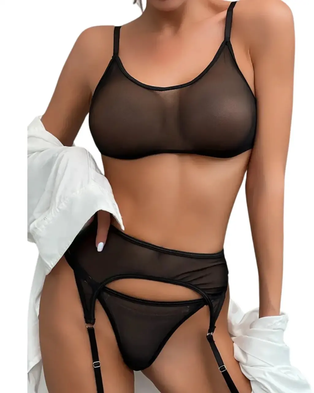 LYYN Fantezi Siyah Transparan Tül Jartiyer Takımı