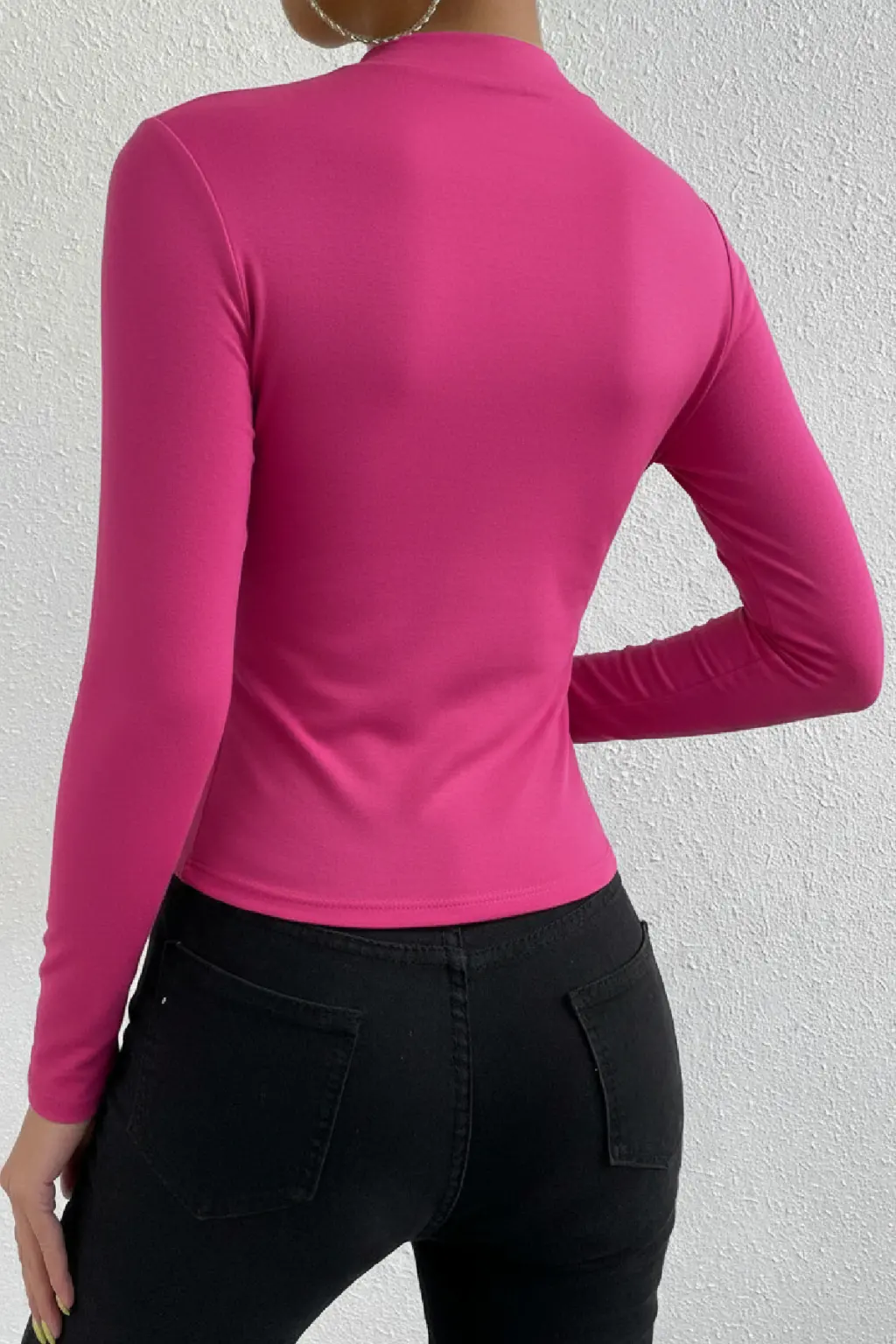 LYYN Kadın Fuşya Belden ve Boyundan Büzgü Detaylı Uzun Kollu Bluz