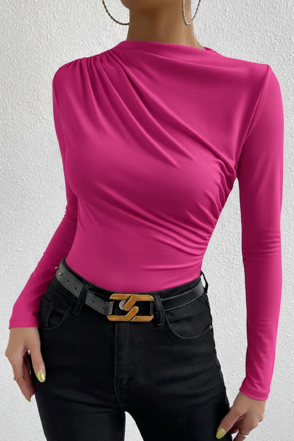 • Modern çizgilerle tasarlanmış Kadın Fuşya Belden ve Boyundan Büzgü Detaylı Uzun Kollu Bluz, enerjik rengiyle dikkat çeken zarif ve iddialı bir parçadır.