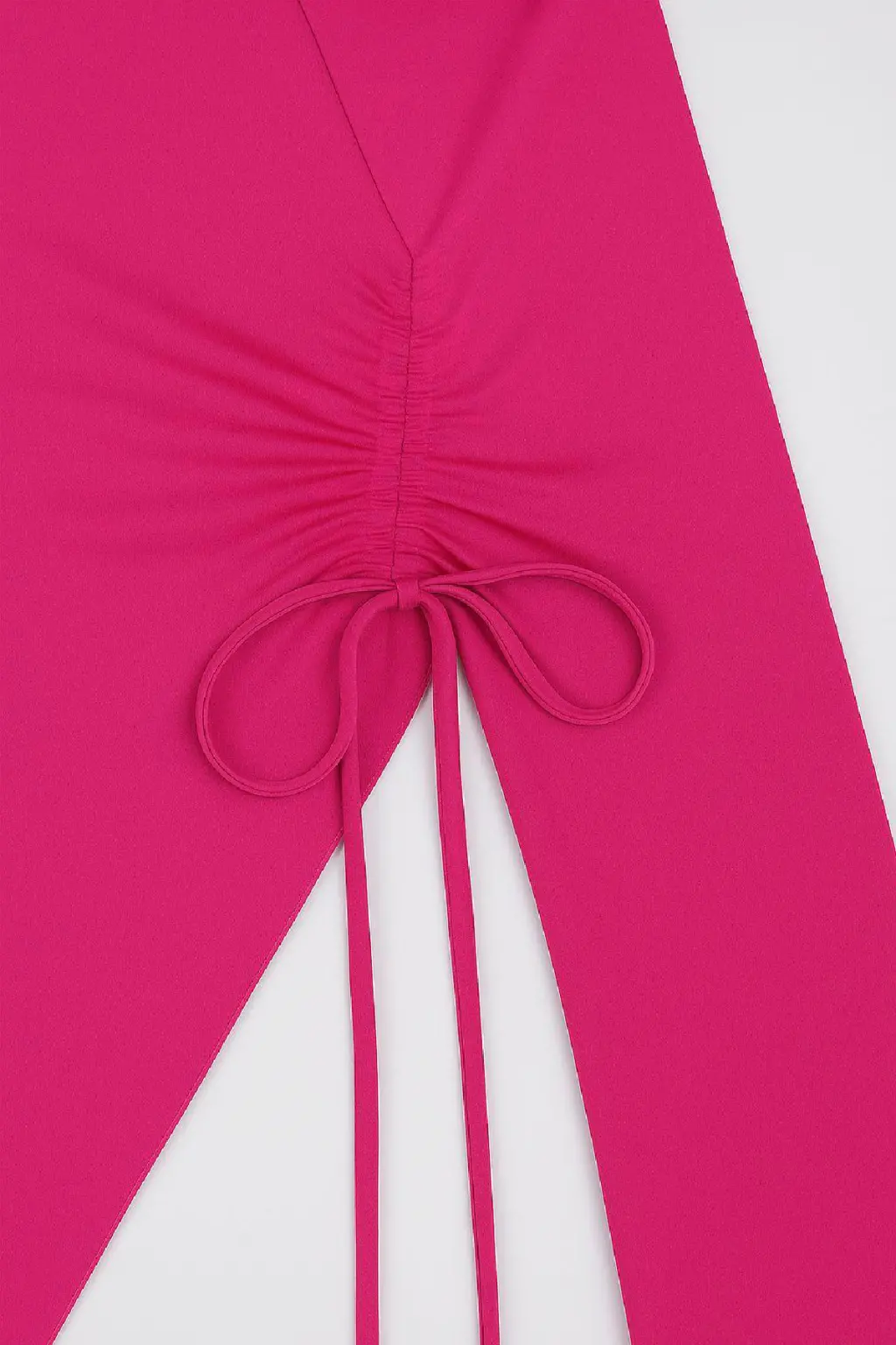 • İddialı ama zarif bir görünüm isteyenler için Kadın Fuşya Asimetrik Yaka Drapeli Yan Bağlamalı Bluz, gardırobun en enerjik parçalarından biri olacak.