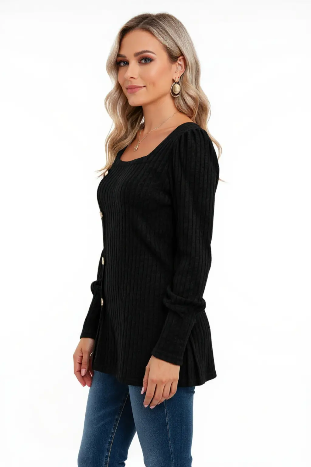 LYYN Kadın Uzun Kollu Düğmeli Mevsimlik Bluz – Yumuşak Dokulu, Esnek ve Sıcak Tutan Kumaş