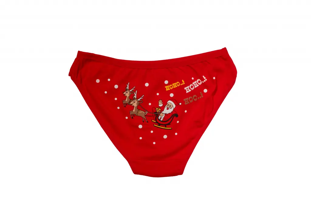 LYYN Kırmızı Yılbaşı Desenli Hoo Hoo Hoo Pamuklu Külot