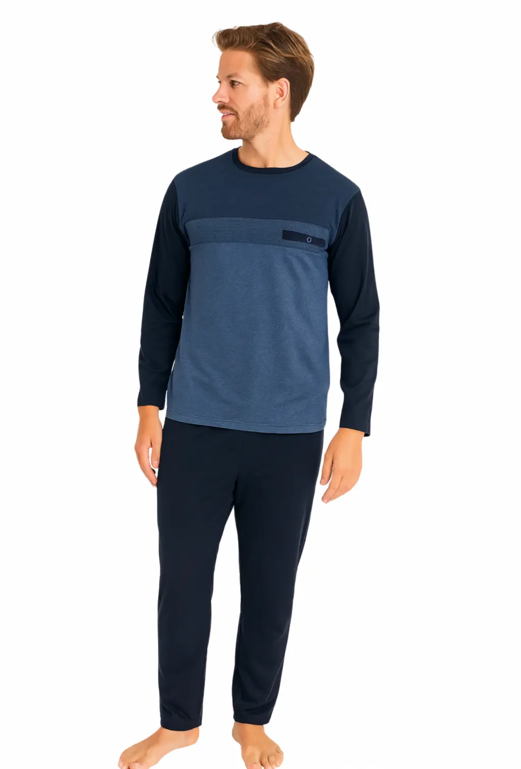 Kly'in rahatlık ve şıklığı bir arada sunan O Yaka Flato Cepli Pijama Takımı, gecelerinize konfor katıyor.
