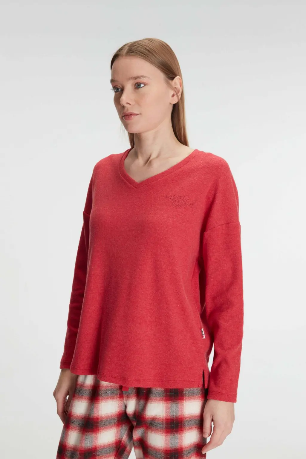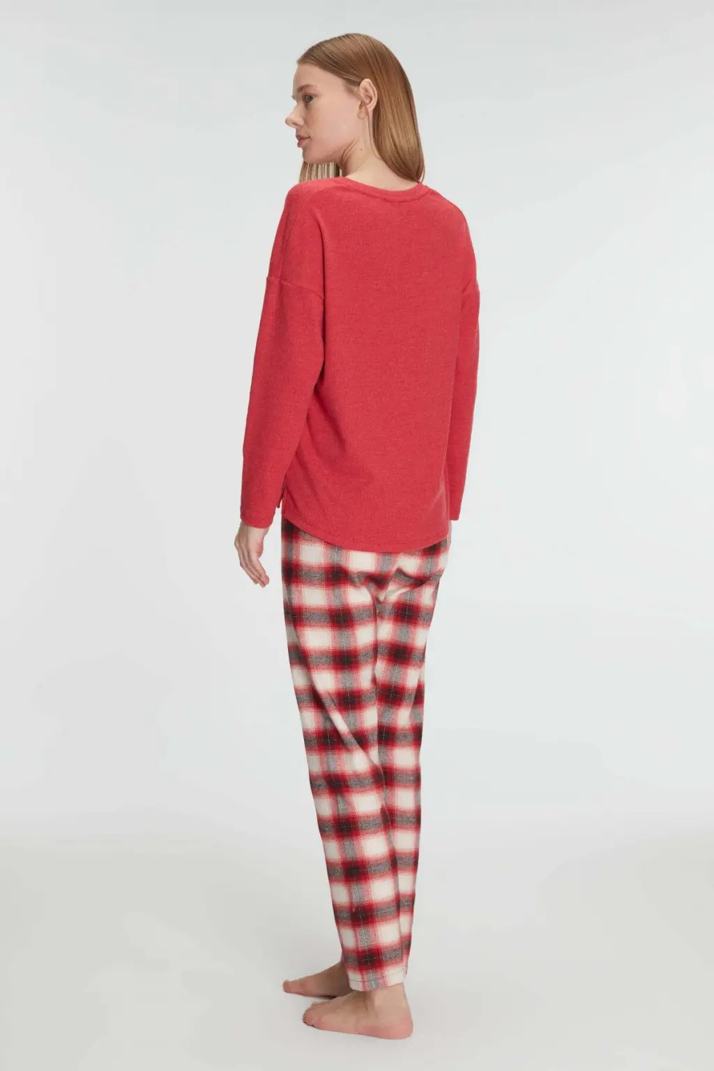 LYYN Pamuklu Kışlık Kare Desenli Uzun Kol Pijama Takımı