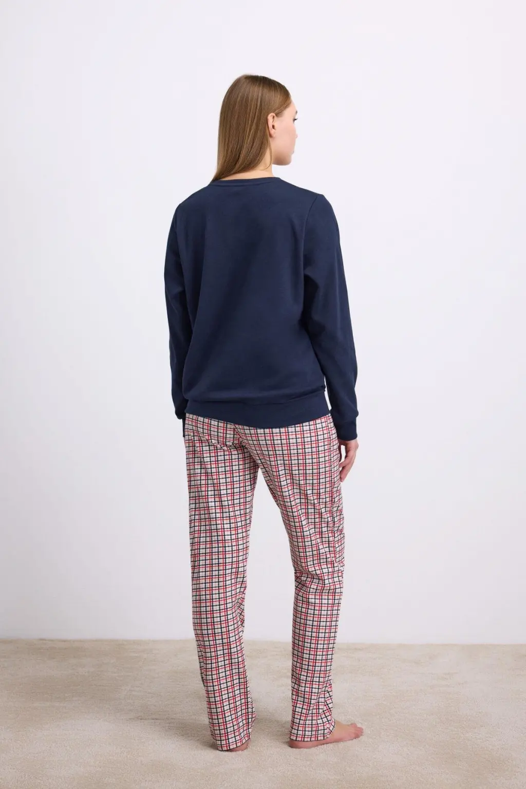 Uzun kollu sweatshirt, minimal ve modern tasarımıyla sıcak bir konfor sunarken; ekose desenli pantolon ise klasik ve şık görünümüyle takımın tarzını tamamlar. Esnek bel yapısı, rahat kesimi ve hafif dokusu sayesinde hem uyku zamanlarında hem de evde keyifli vakit geçirdiğiniz anlarda ideal bir kullanım sunar.