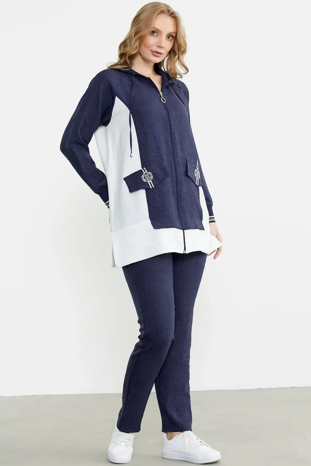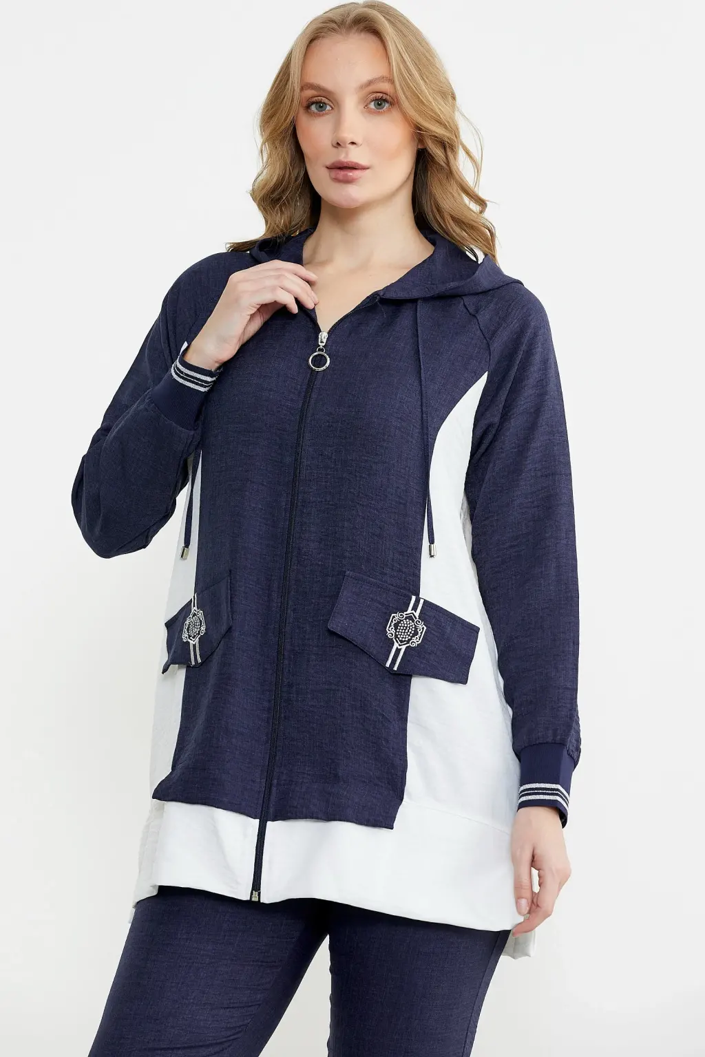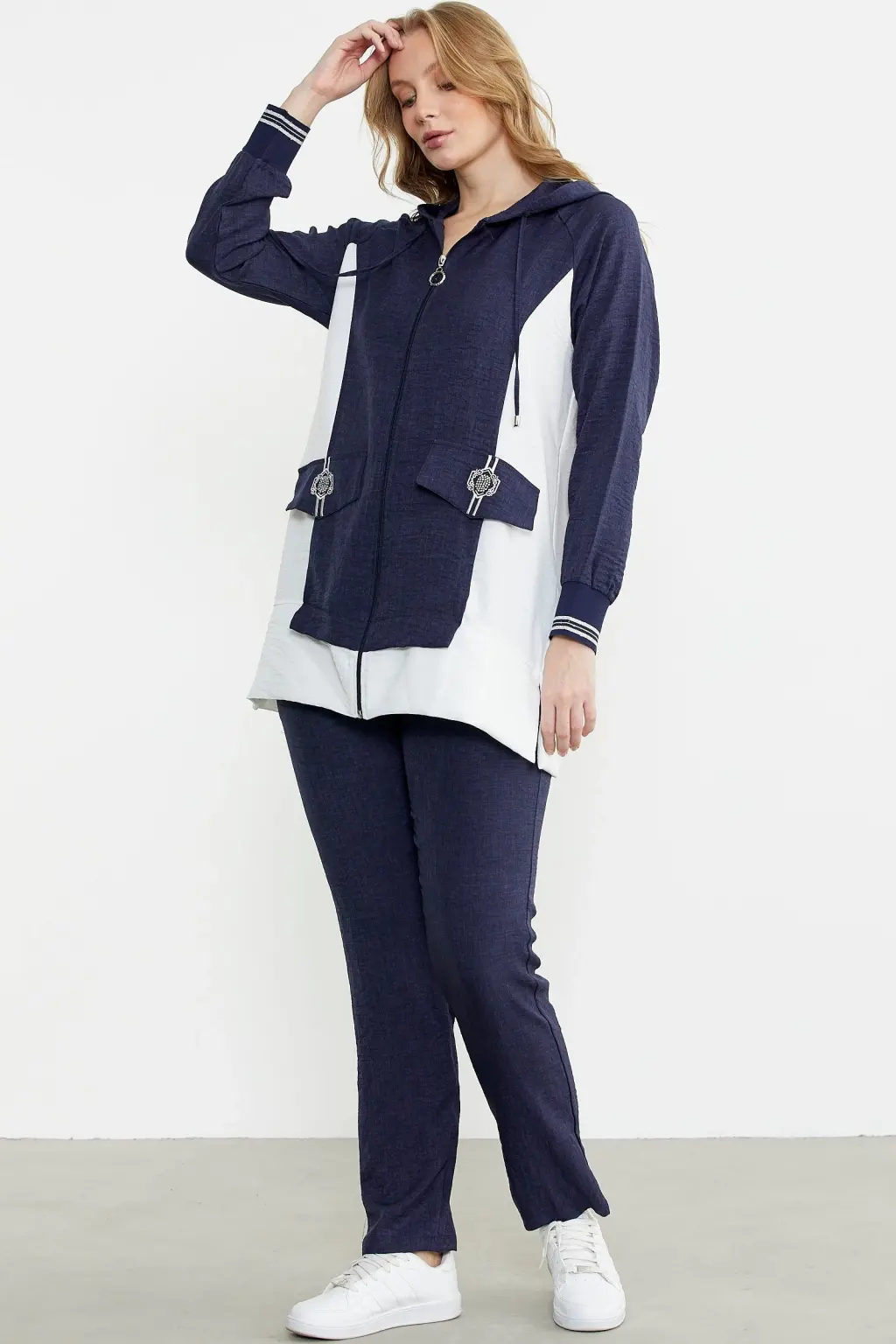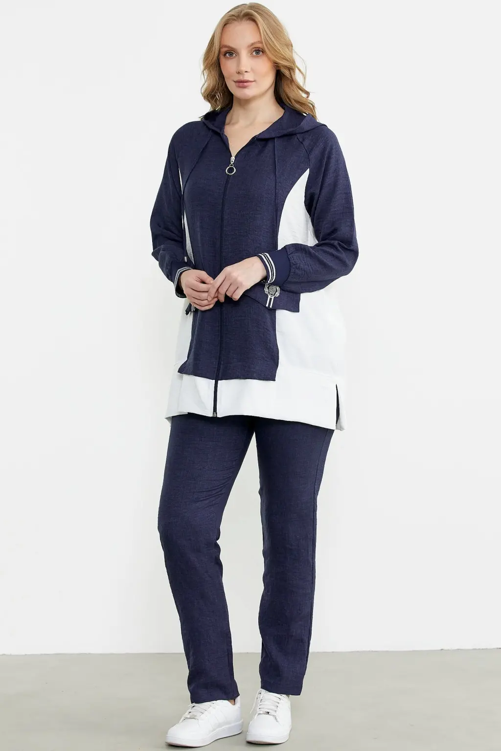 • Sementa 76448 Keten Görünümlü Kapüşonlu Tunik Takım