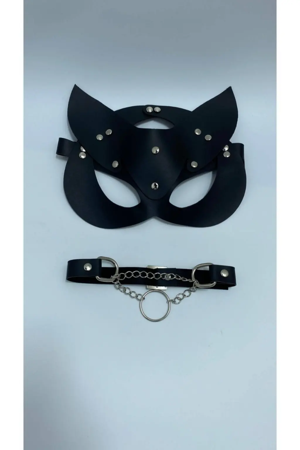 Siayh Maske Ve Zincirli Siyah Boyun Aksesuarı 800245